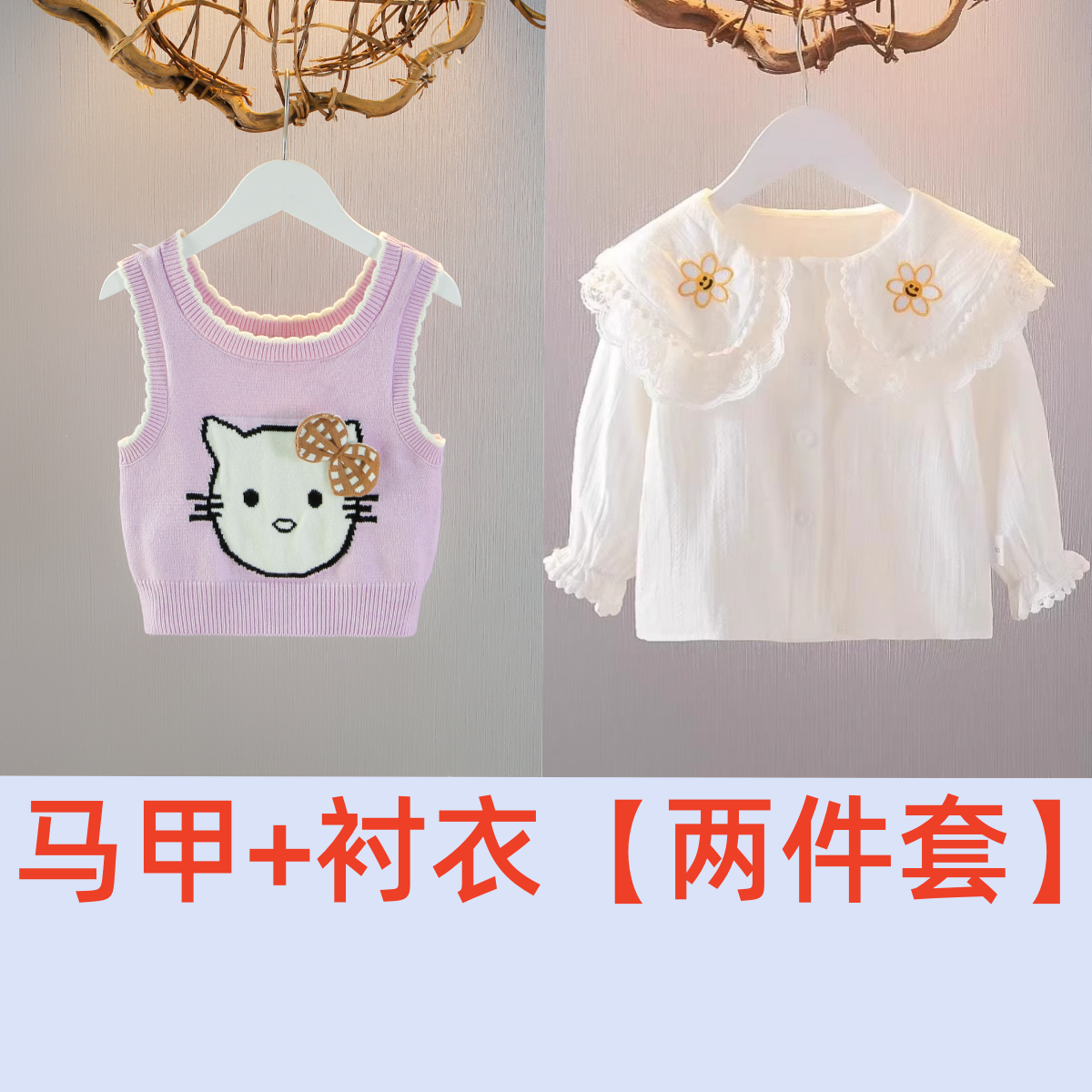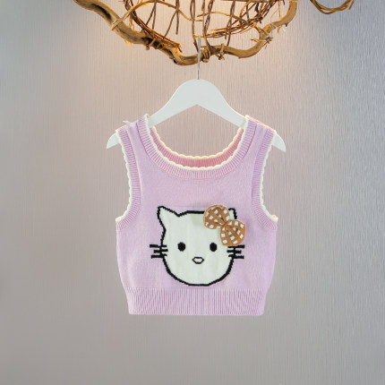 2025女童针织马甲1234岁宝宝背心卡通毛衣坎肩婴儿马夹洋气春秋装
