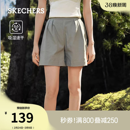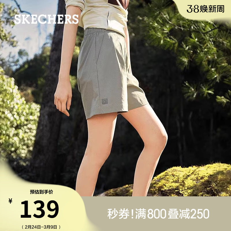 斯凯奇新款女款山系凉感梭织短裤简约风户外运动五分裤休闲短裤