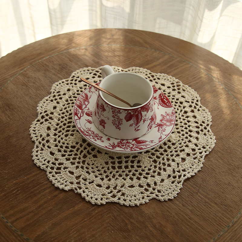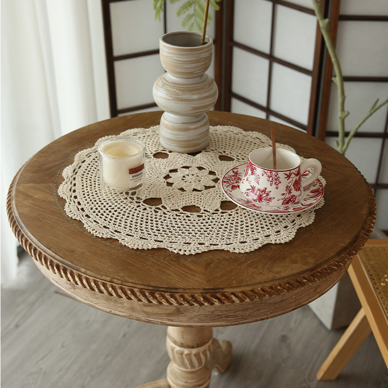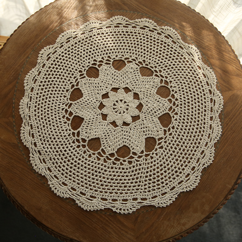 法式田园风手工编织蕾丝餐垫家用防尘盖布小圆桌杯垫装饰拍摄道具