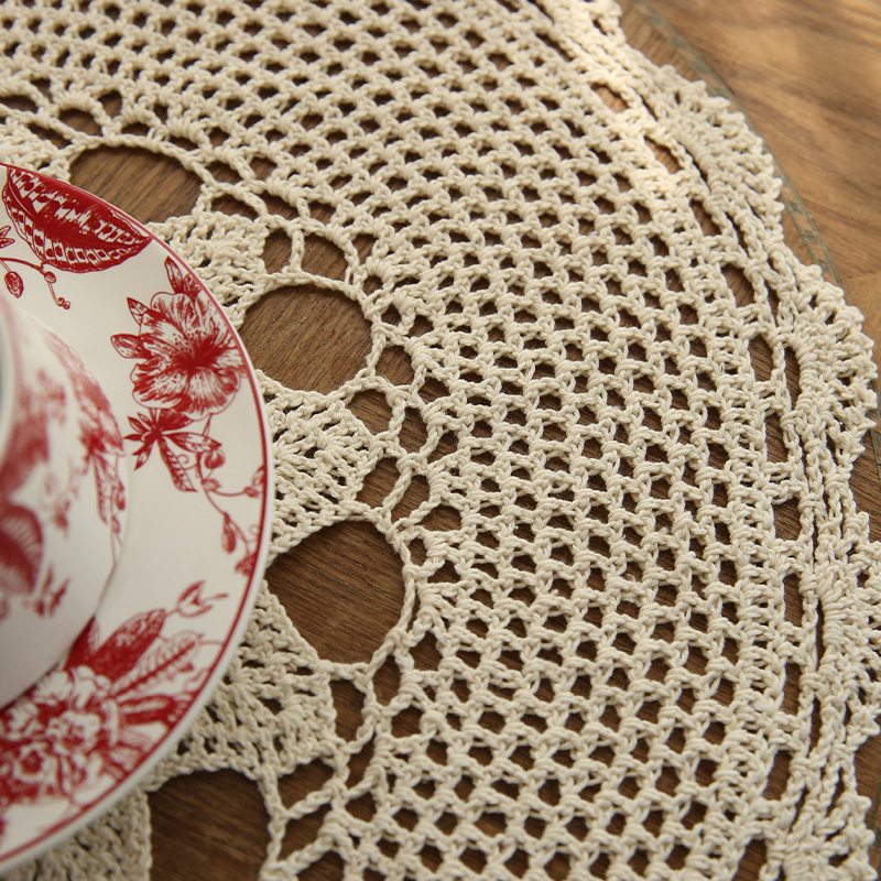 法式田园风手工蕾丝棉麻编织餐垫
