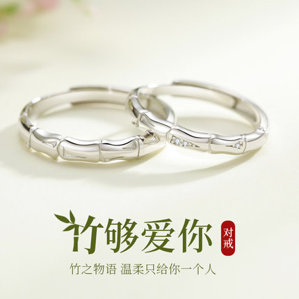 竹节原创999纯银情侣对戒求婚戒指小众设计刻字生日礼物送女男友