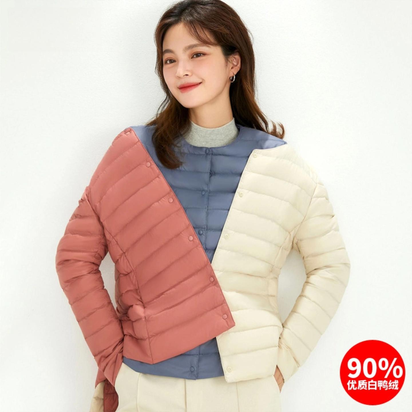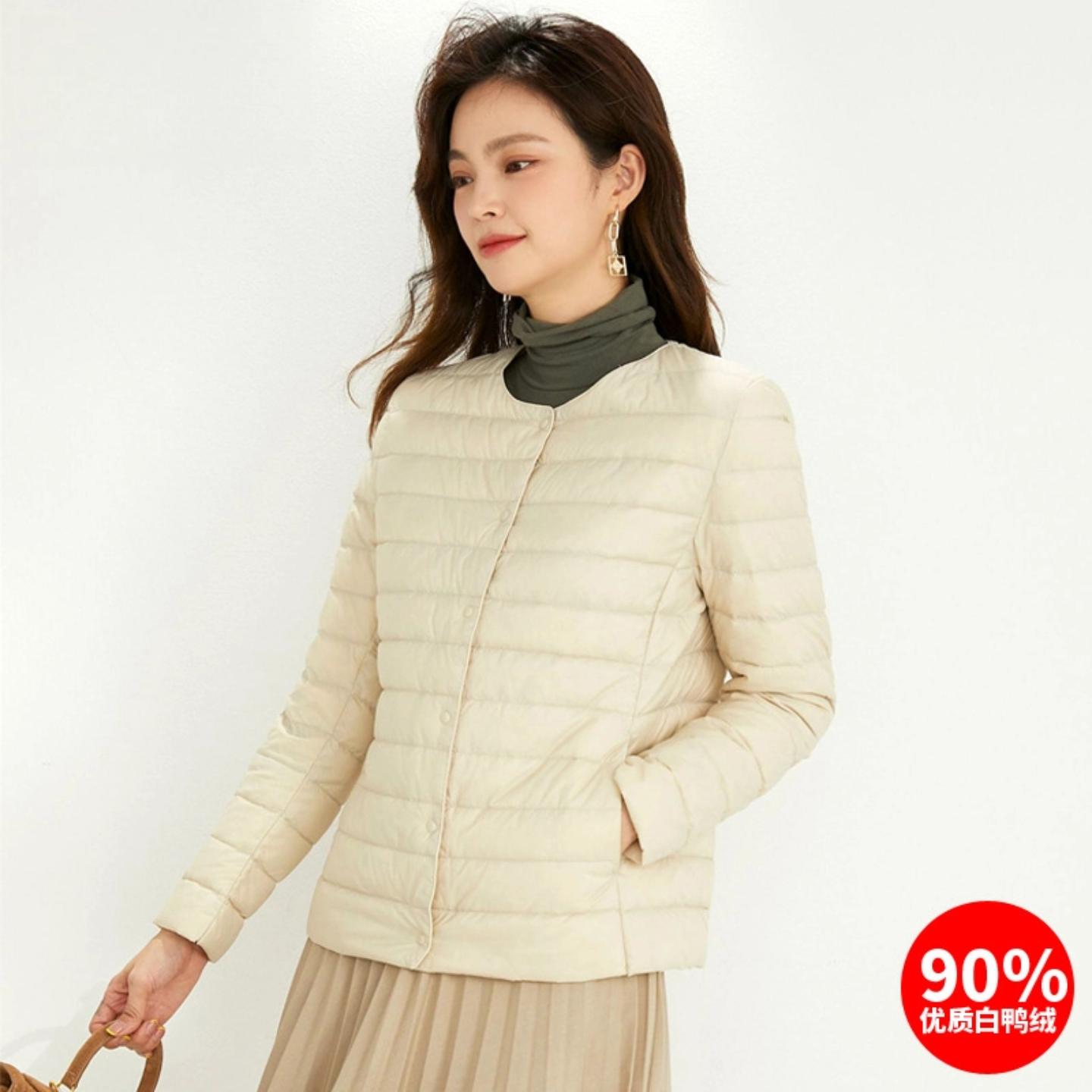 九江羽绒官方旗舰店新款内胆轻薄短款平湖外穿圆领羽绒服大码