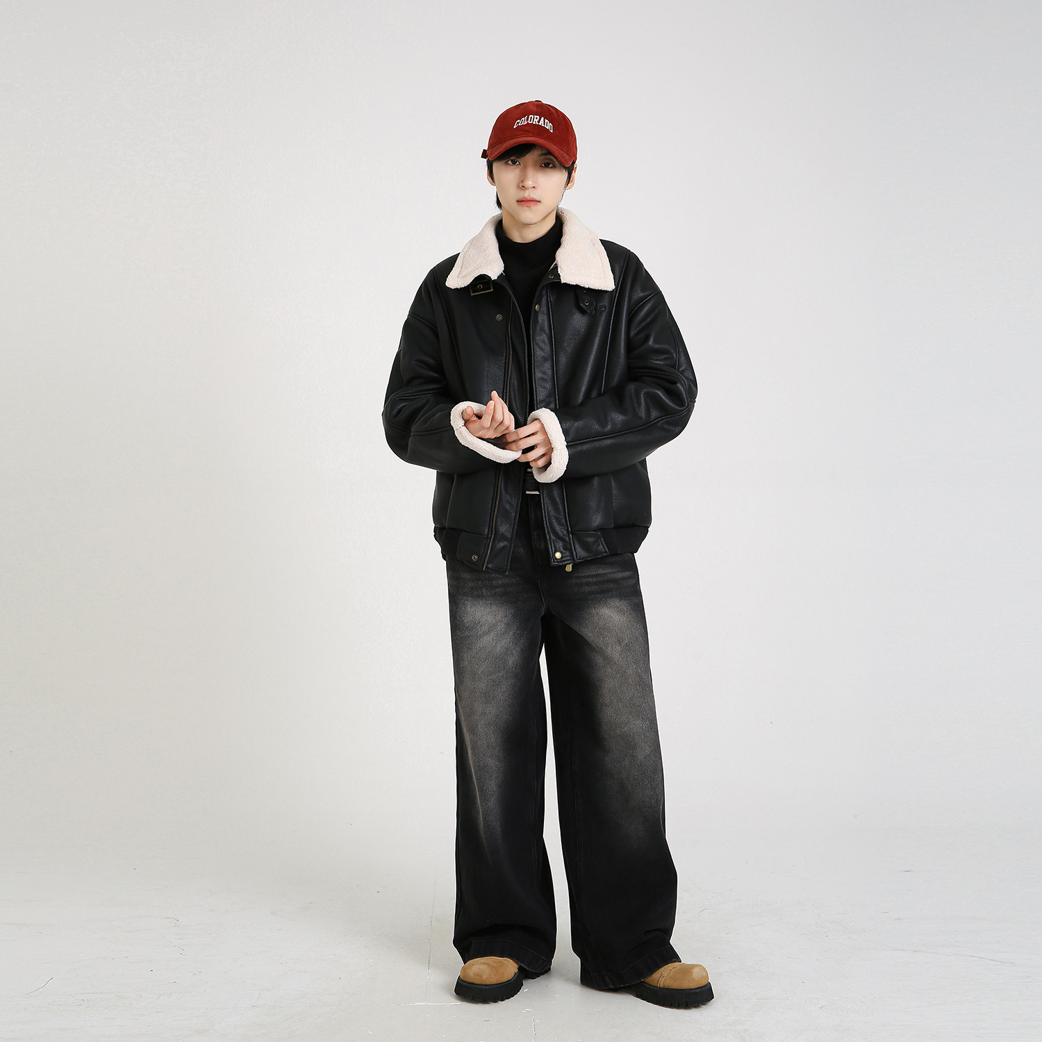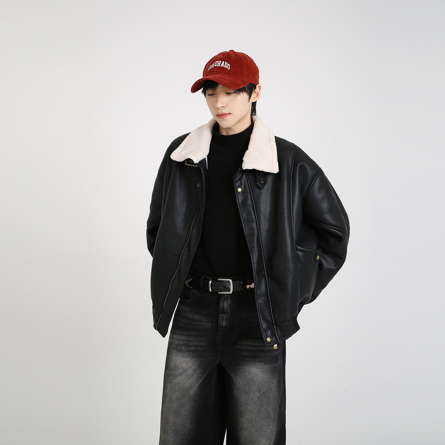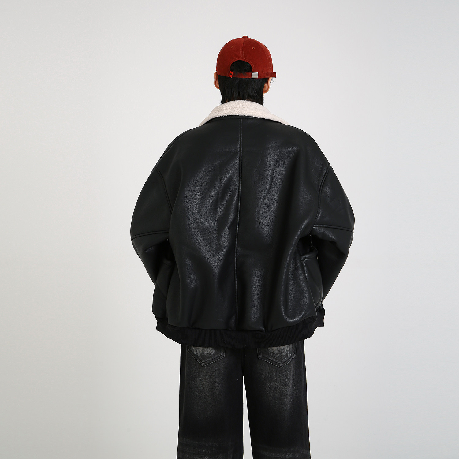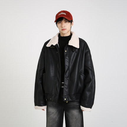 NineteenAutumn秋冬美式加绒机车皮衣pu皮宽松保暖棉服外套男女