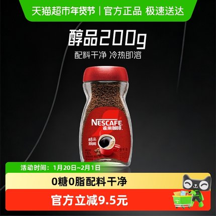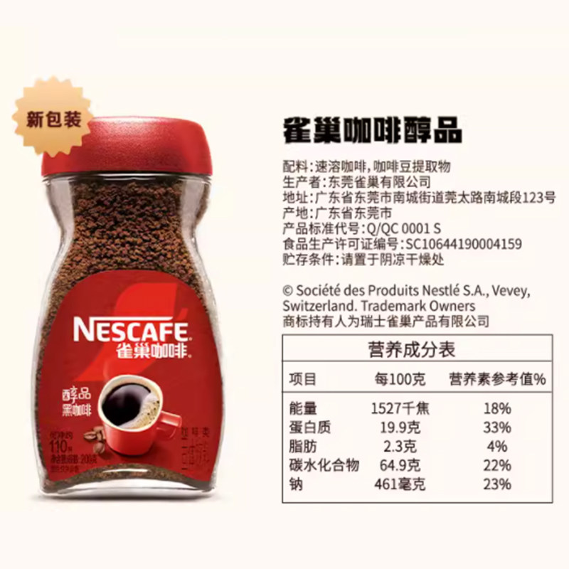 雀巢咖啡醇品美式速溶黑咖啡200g罐装健身提神无负担