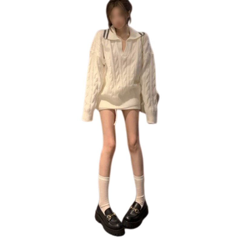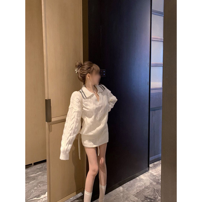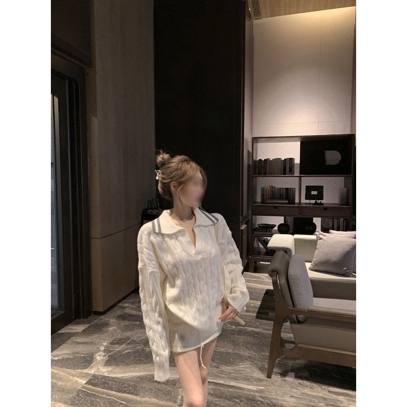 法式时尚气质温柔风麻花纹翻领套头毛衣搭配针织包臀短裙两件套装