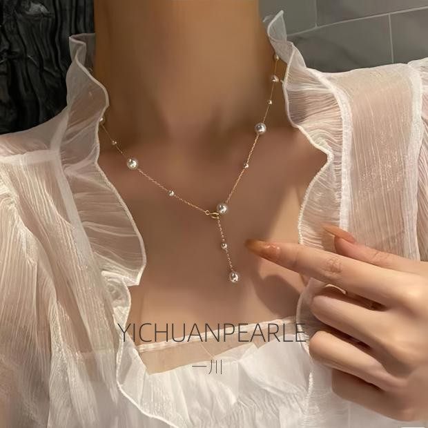 Akoya海水珍珠项链满天星Y链18K颈饰锁骨链天女光泽多种戴法颈链