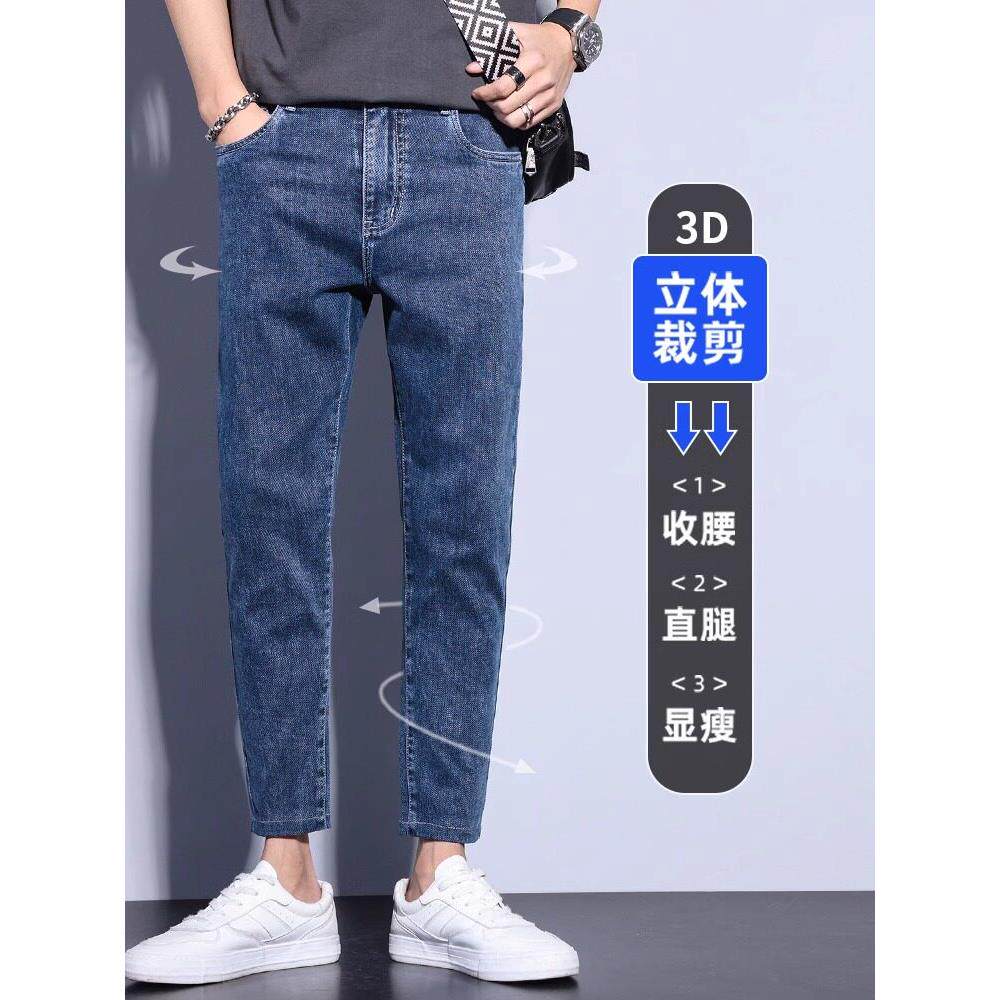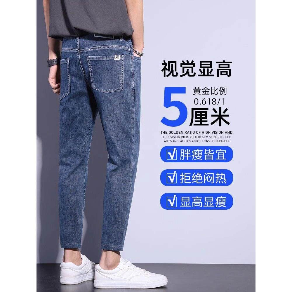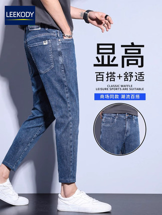 LEEKODY秋季蓝色九分牛仔裤男士修身小脚2025新款弹力百搭9分裤子