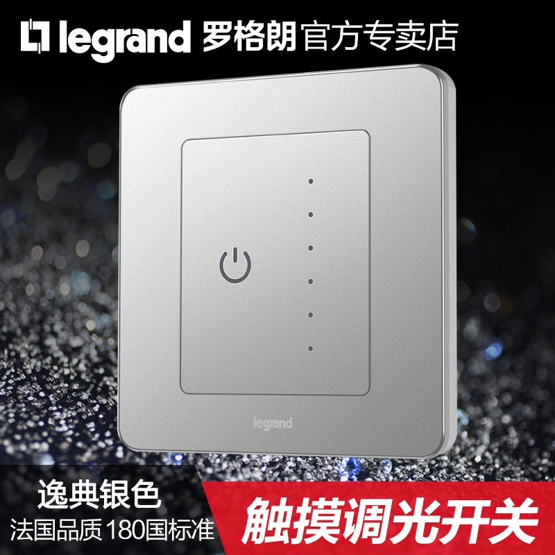 罗格朗开关插座面板逸典醇砂钢300W通用触摸调光开关墙壁电源86型