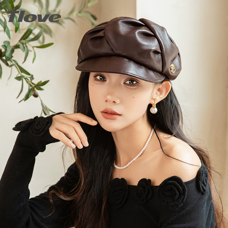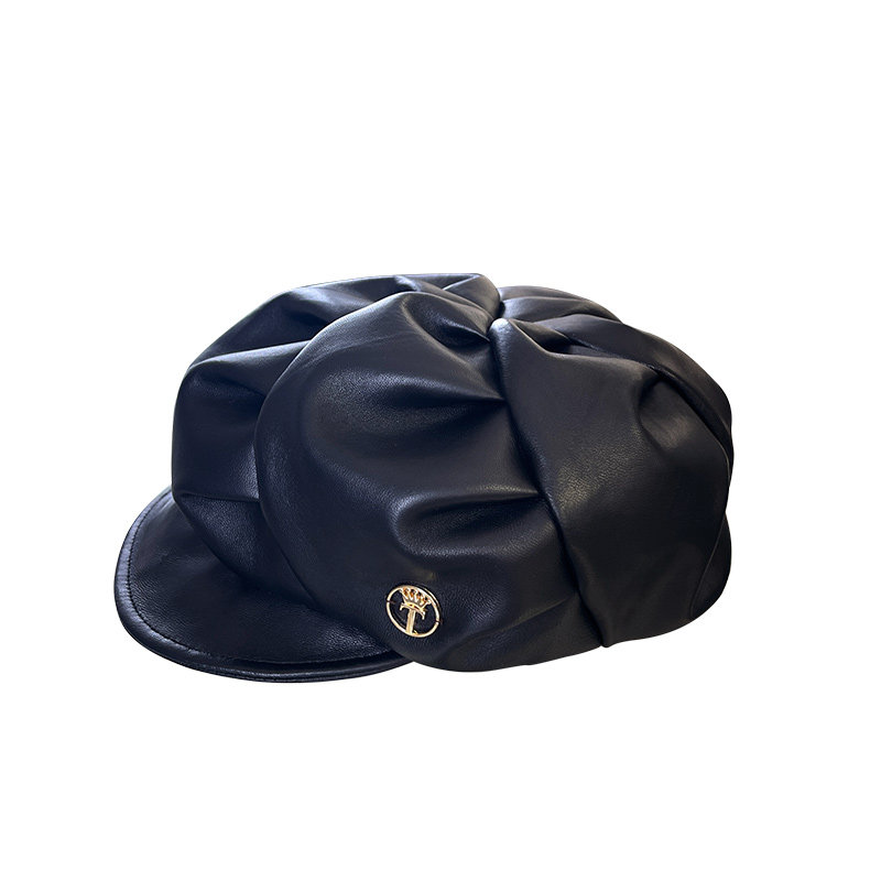 9517时尚潮羊皮帽子女士秋冬季新款英伦复古户外鸭舌帽出街贝雷帽