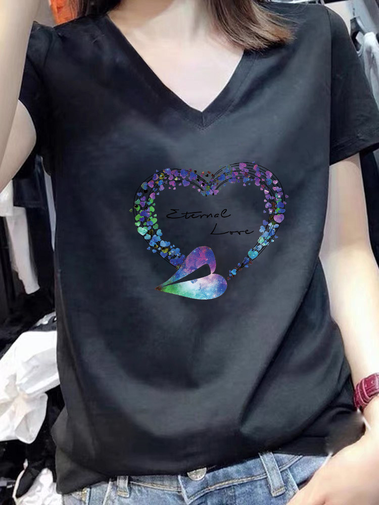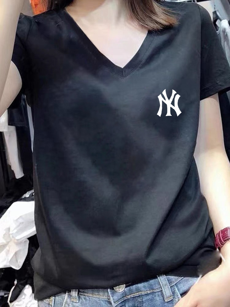 欧洲站V领短袖t恤女宽松夏季2025年新款欧货女装纯棉百搭休闲上衣