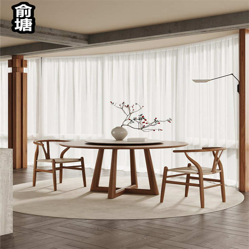 新中式2024新款实木圆桌家用一桌四椅圆形白蜡木带转盘餐桌椅组合