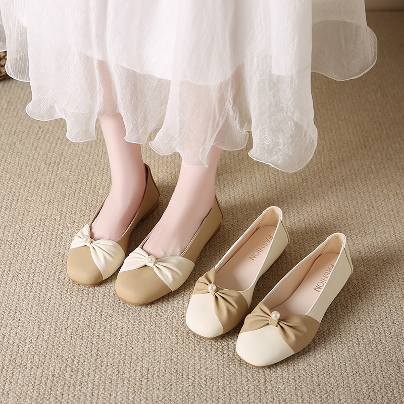 品牌女鞋2025新款秋季真皮浅口玛丽珍皮鞋配裙子温柔平底豆豆单鞋