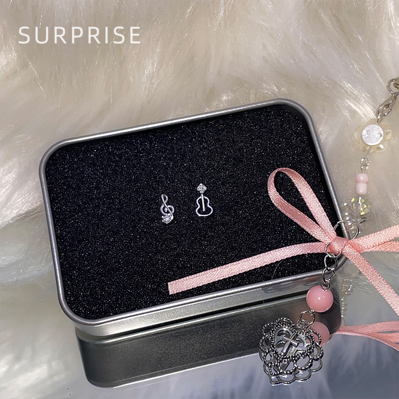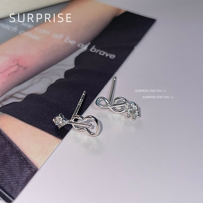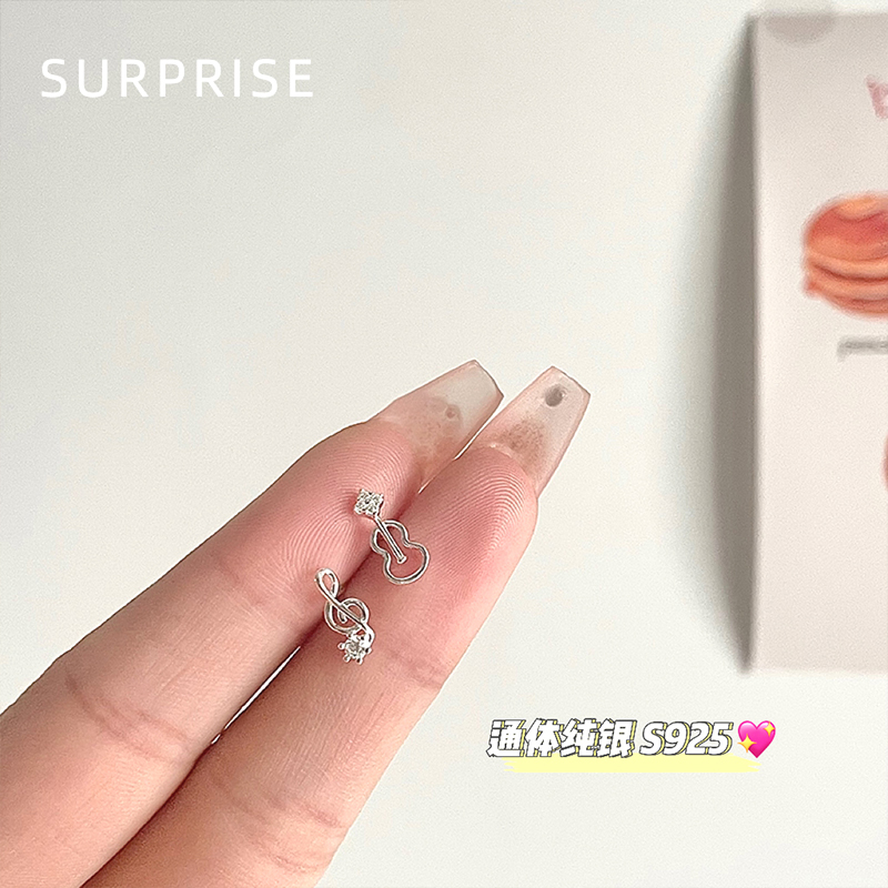 Surprise 925纯银吉他音符耳钉女小众个性耳环不对称设计独特耳饰