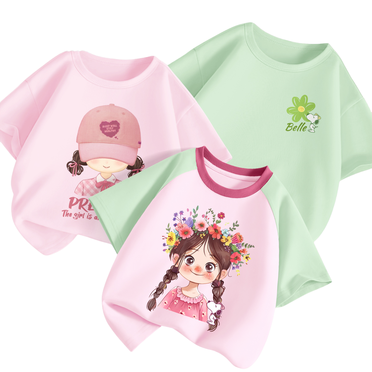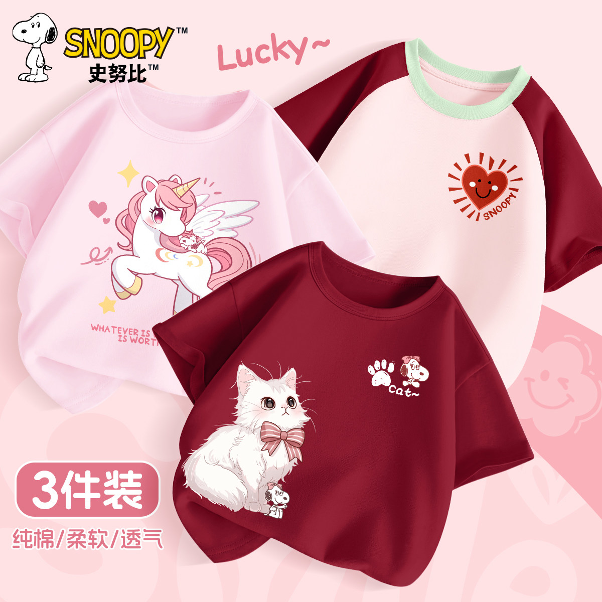 史努比女童短袖t恤2026新款儿童衣服夏季纯棉上衣女大童夏装半袖