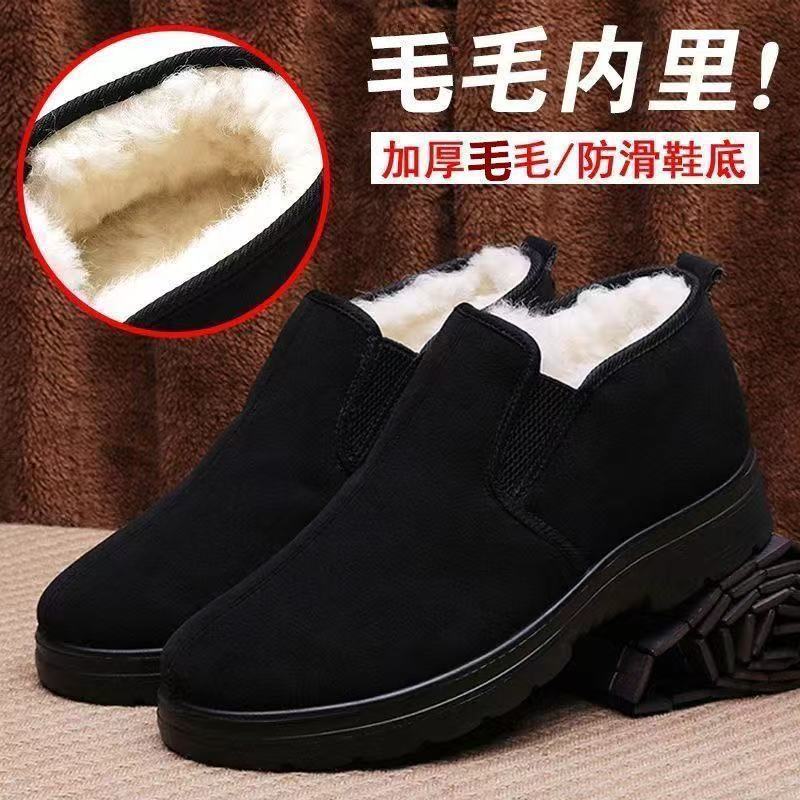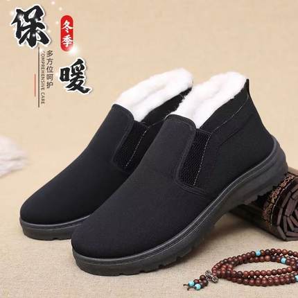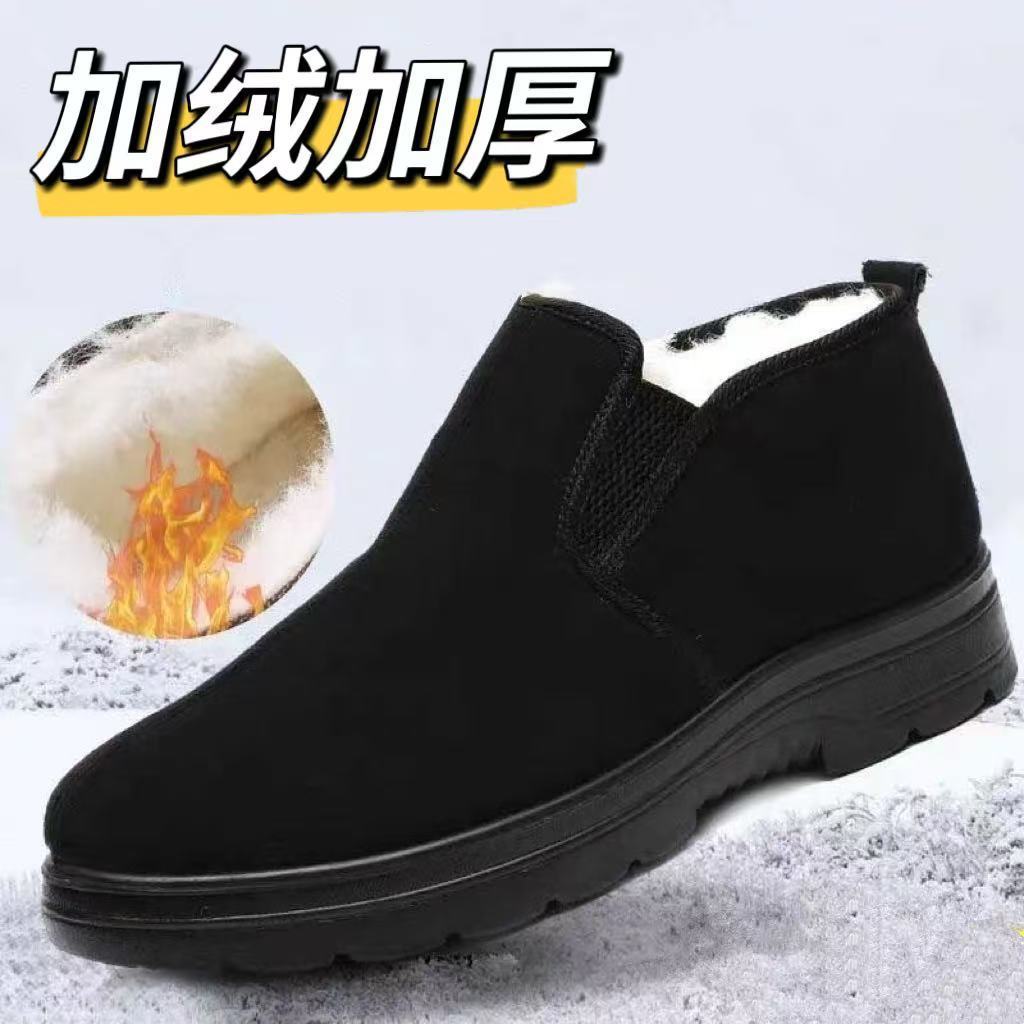 冬季老北京布鞋加绒保暖防滑男棉鞋中老年老人鞋爸爸爷爷老头棉鞋