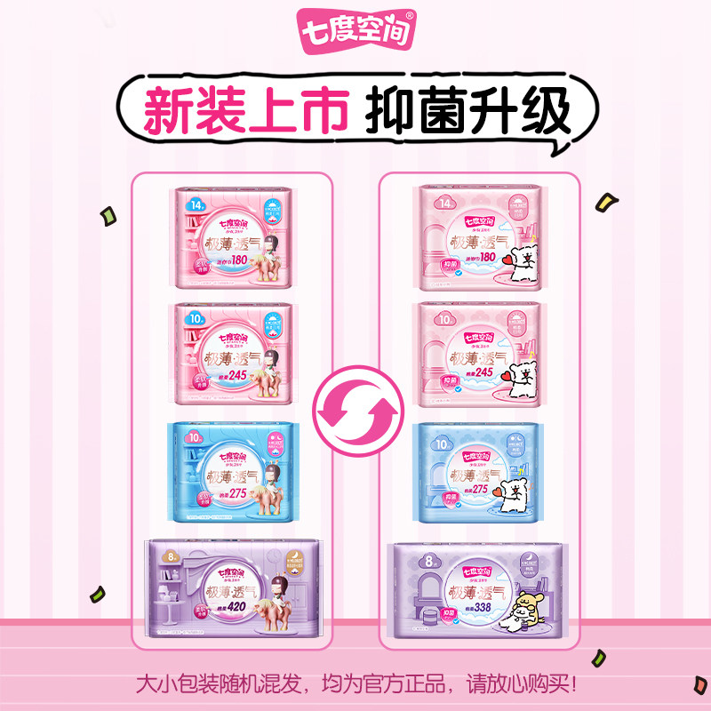 【开学季】七度空间卫生巾极薄迷你棉柔加长日用姨妈巾正品透气