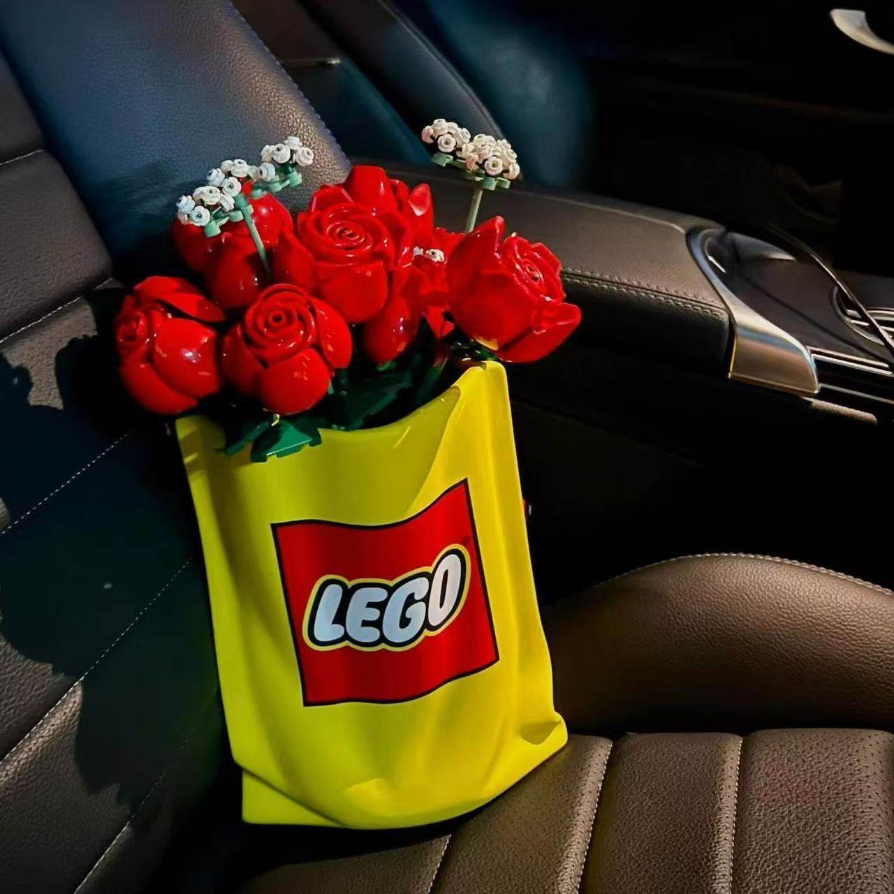 网红新款乐高玫瑰正黄折角布袋花瓶北欧现代轻奢奶油风客餐厅摆件