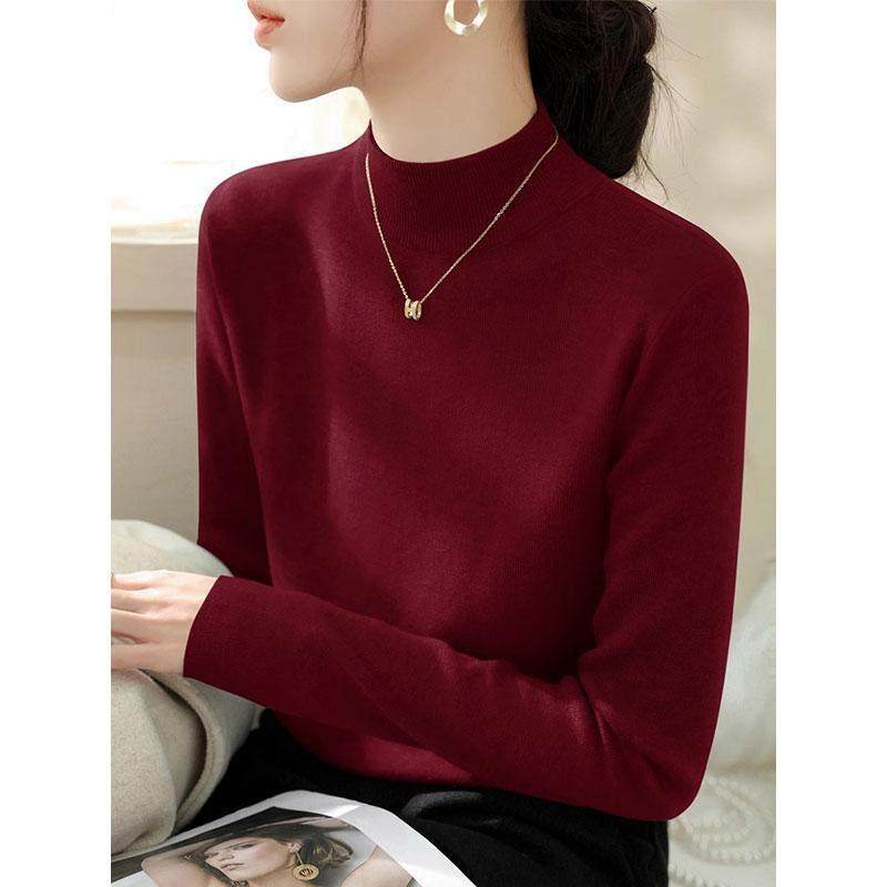 法式灰色半高领针织衫女2025秋季新款加绒毛衣修身内搭打底衫上衣