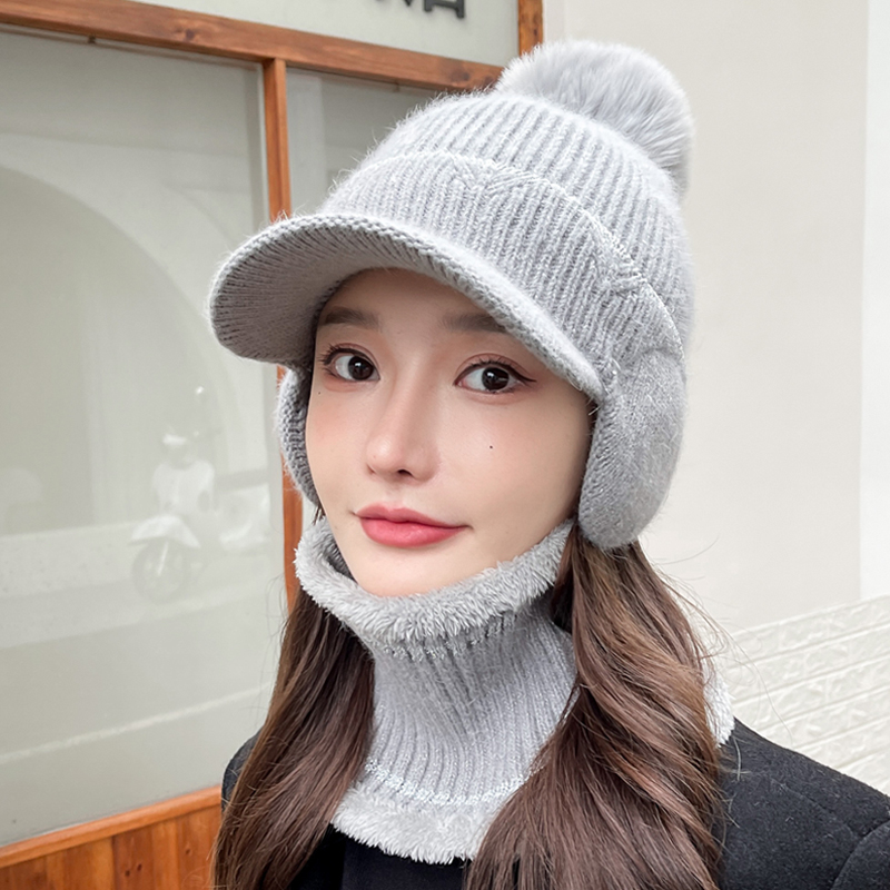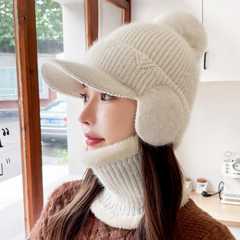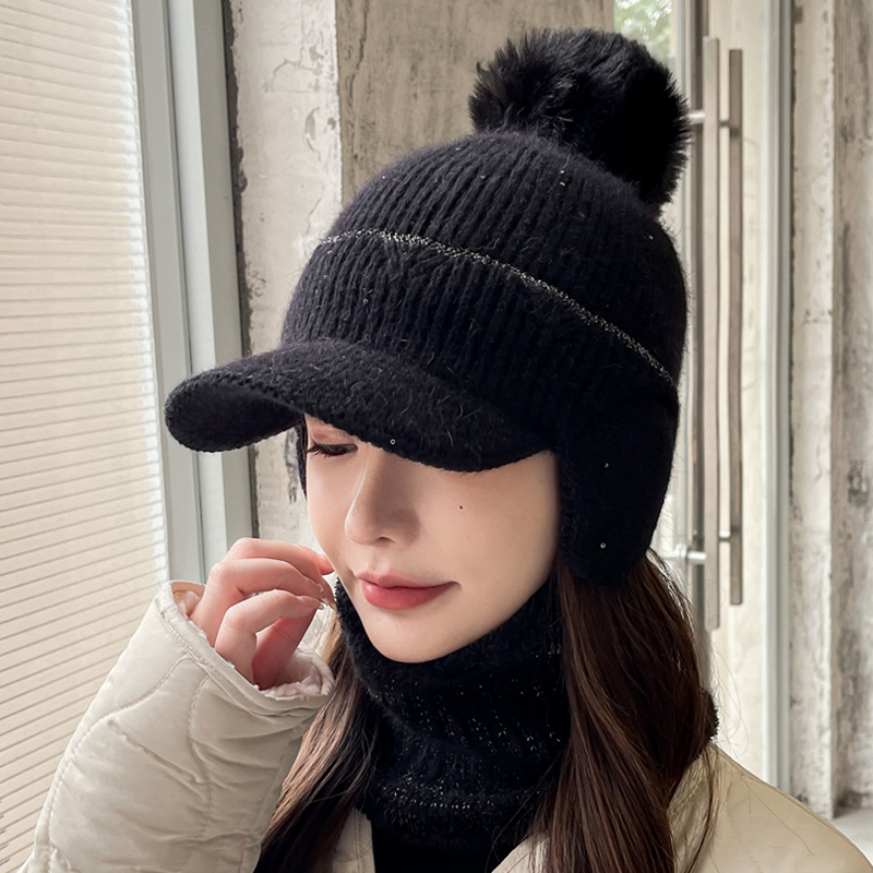 帽子女士冬季加绒保暖针织帽秋冬季毛线帽加厚防寒骑车鸭舌护耳帽