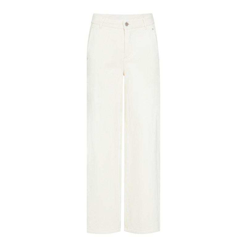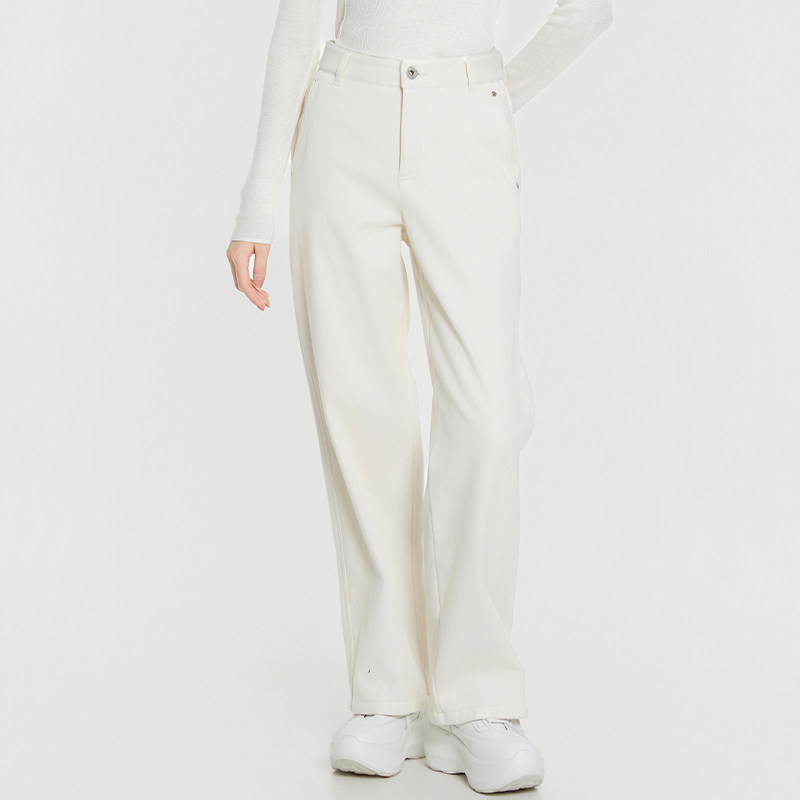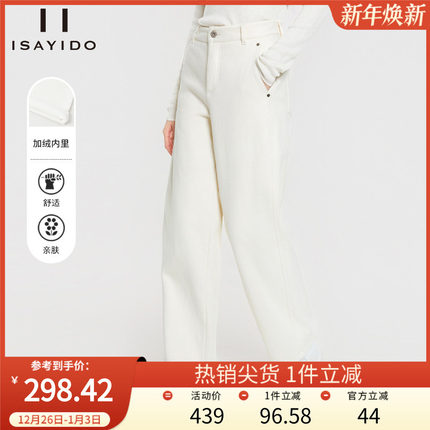傲丝度白色加绒牛仔裤女冬装新款高腰宽松阔腿裤百搭垂感直筒裤子