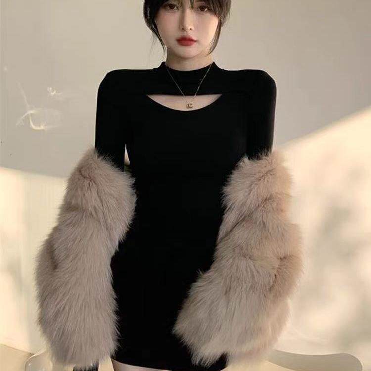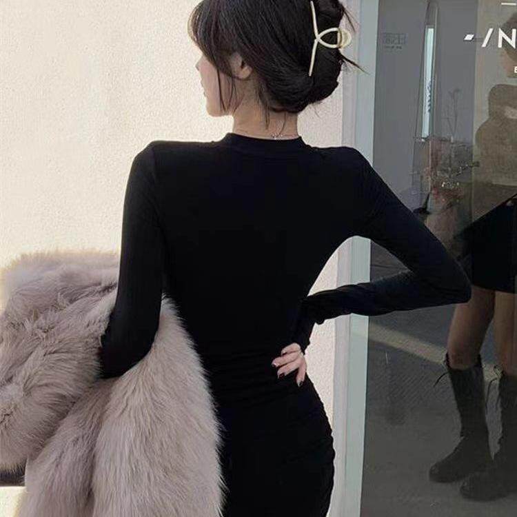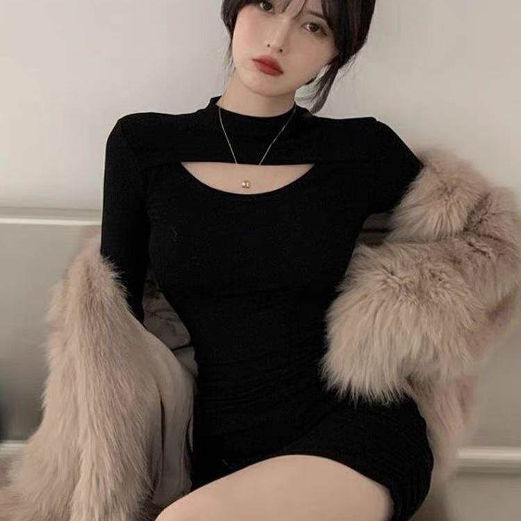 纯欲风性感镂空连衣裙女高级感秋冬新款法式长袖大码修身包臀短裙