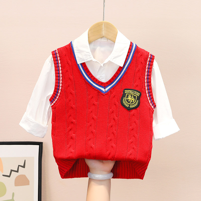 男童针织衫马甲英伦风男孩校服毛衣背心中大童儿童小学生衬衣套装