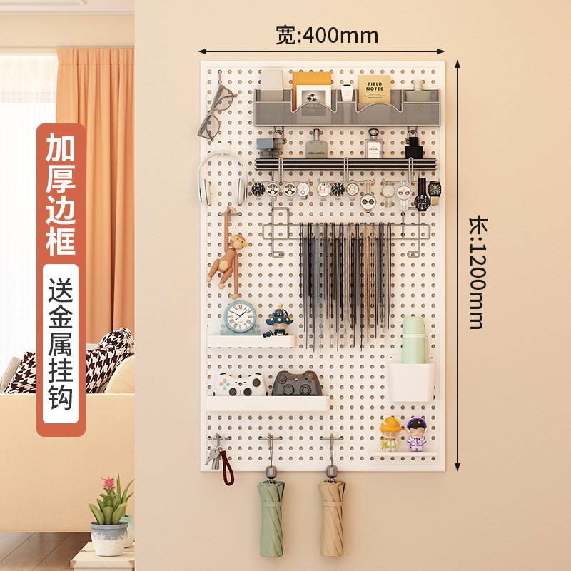 洞洞板置物架铁艺冲孔板墙面收纳架五金工具挂板超市货架书桌金属