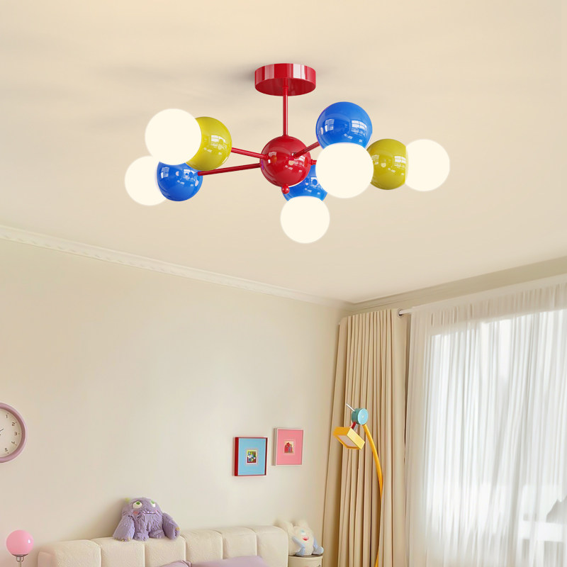 孟菲斯儿童房吊灯现代简约创意马卡龙彩色球形树枝造型网红灯饰