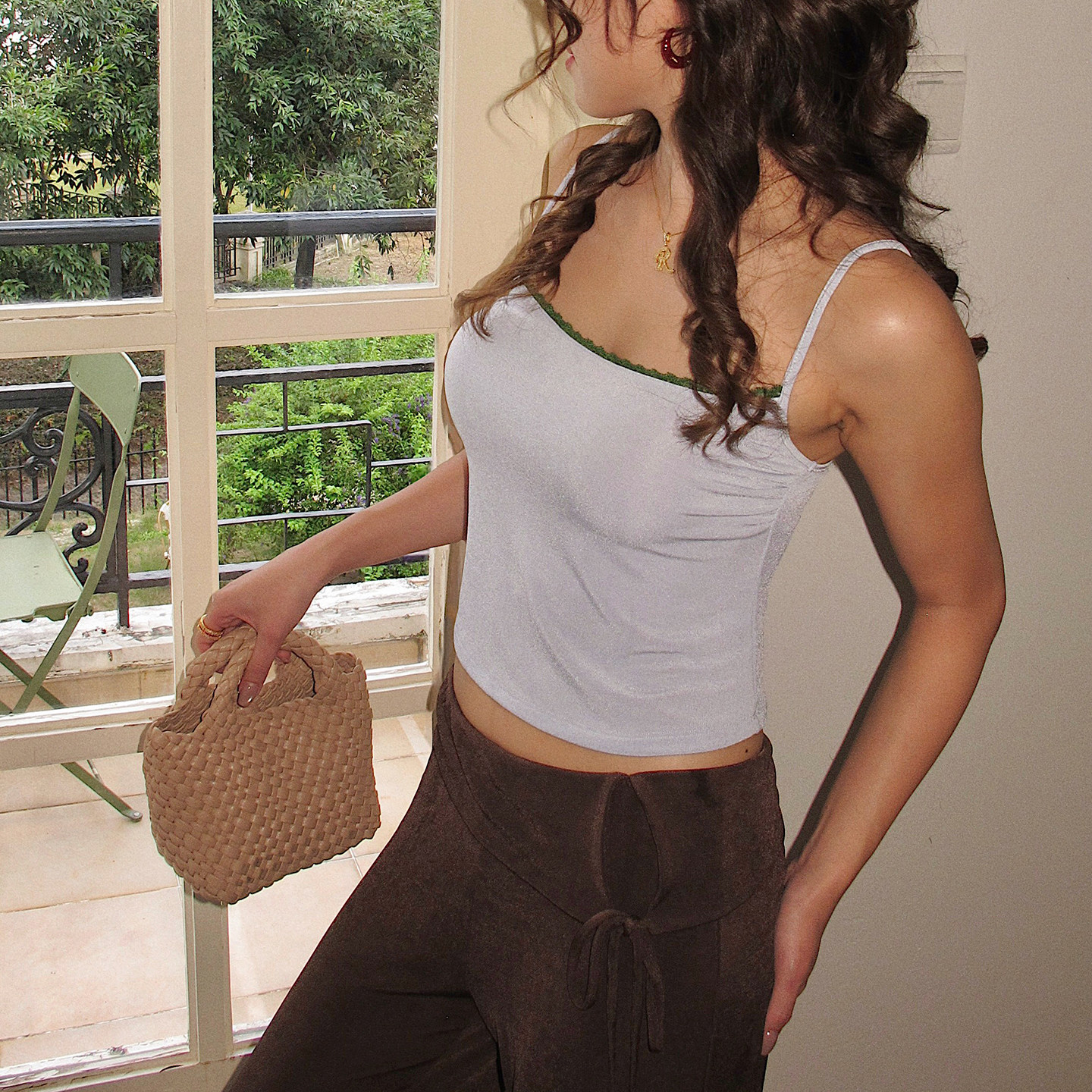 Lily Rose野玫瑰 法式复古印花高腰显瘦a字半身裙女+蕾丝吊带背心