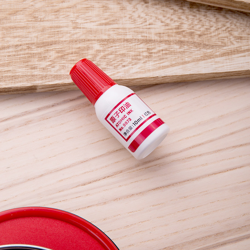 得力9873红色蓝色原子印油 10毫升印台印泥油印章油红色快干