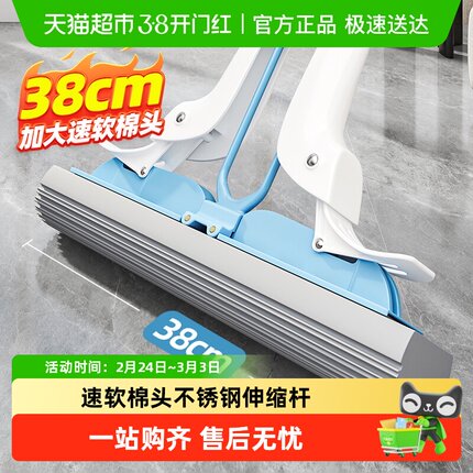 美丽雅海绵拖把头免手洗家用拖地神器胶棉吸水一拖净速软棉头