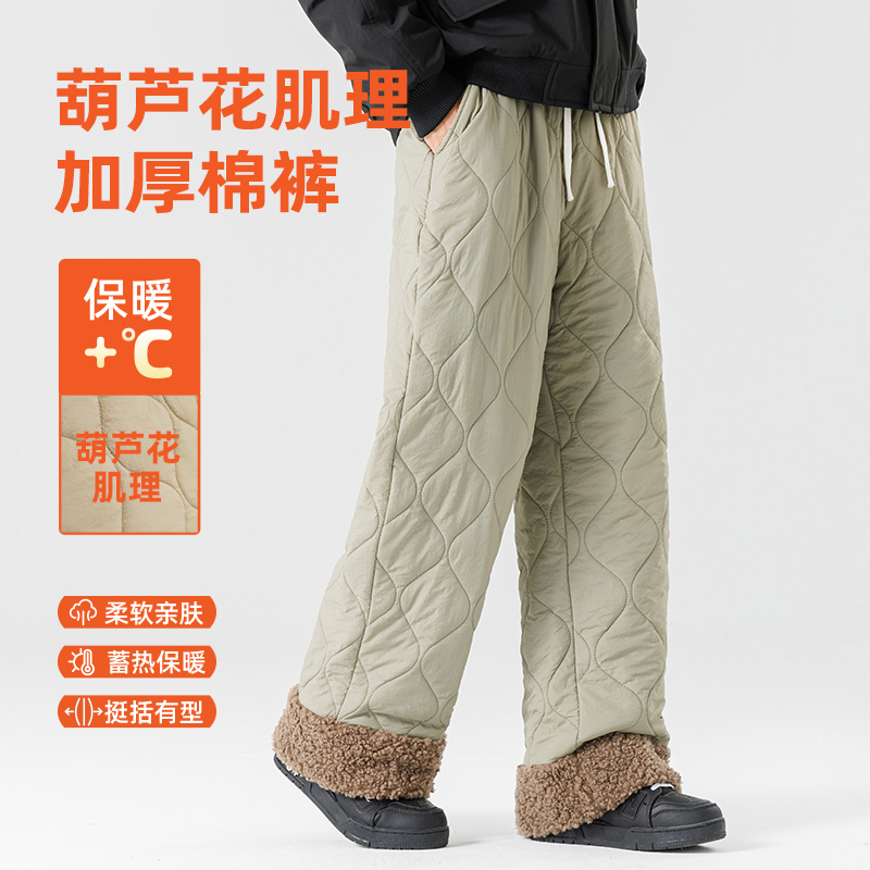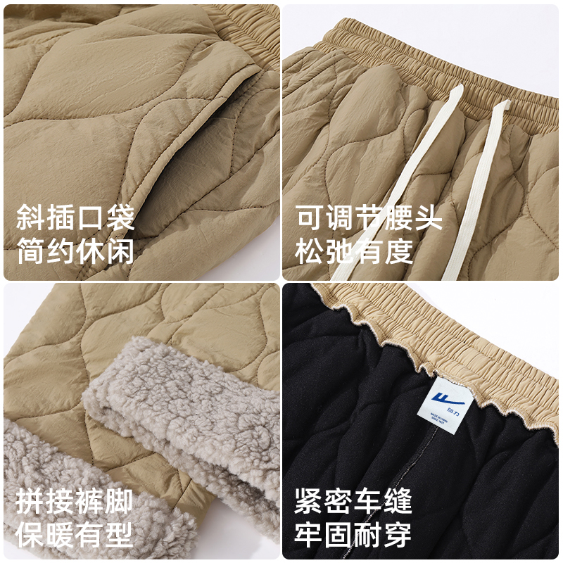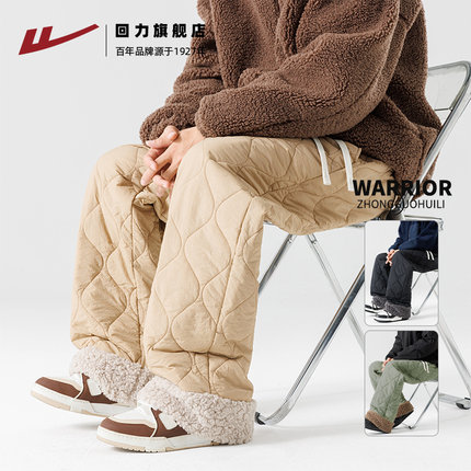 回力冬季卡其色百搭2025新款葫芦花保暖棉裤男士夹棉重磅休闲裤S