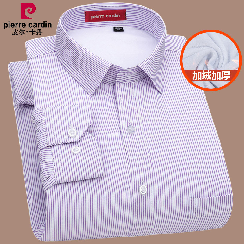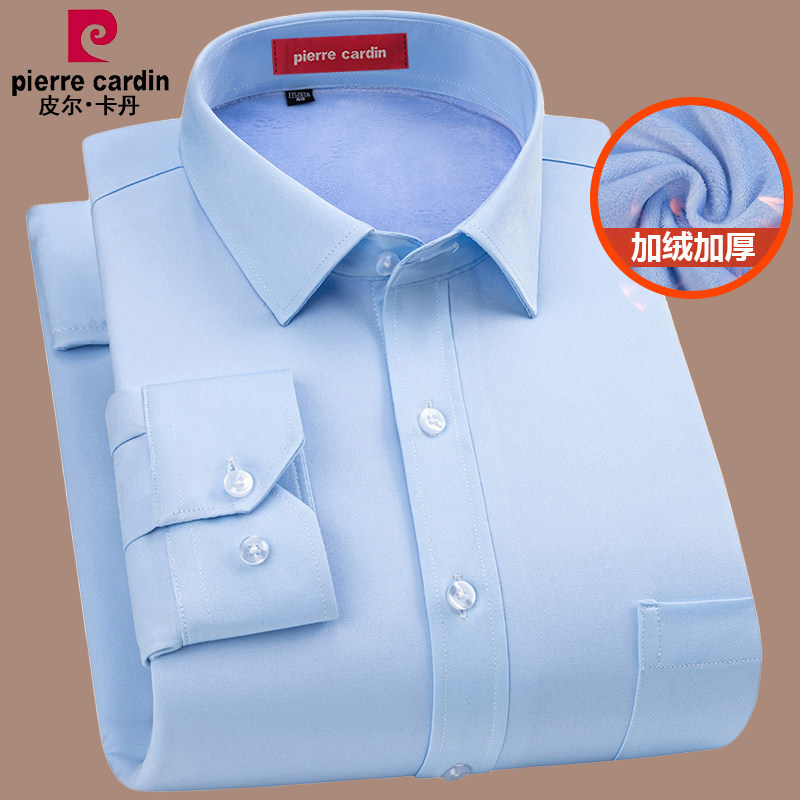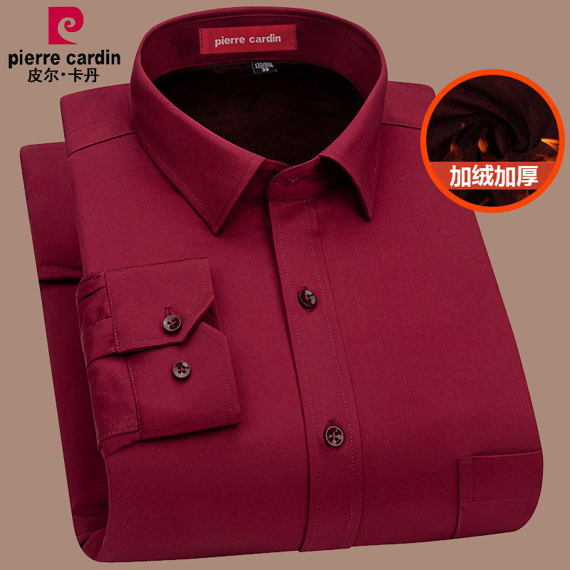 皮尔卡丹纯棉加绒衬衫男2024冬季加厚保暖中年商务男士正装白衬衣