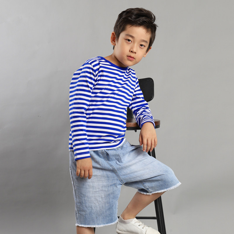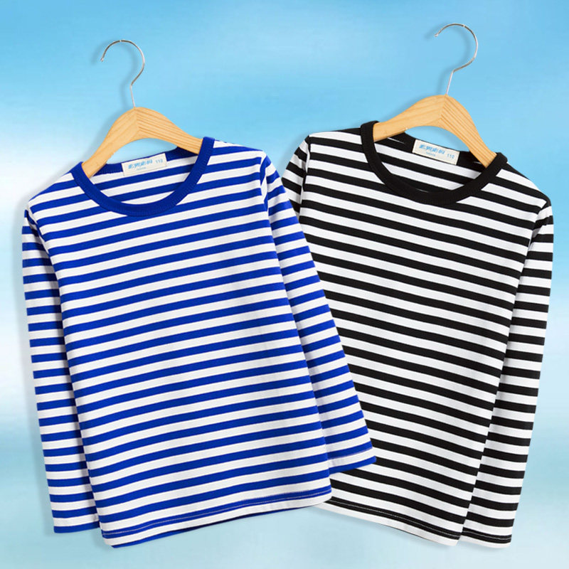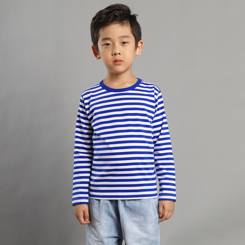 秋冬装海魂衫儿童装长袖t恤 男童女童宝宝蓝白条纹圆领纯棉上衣