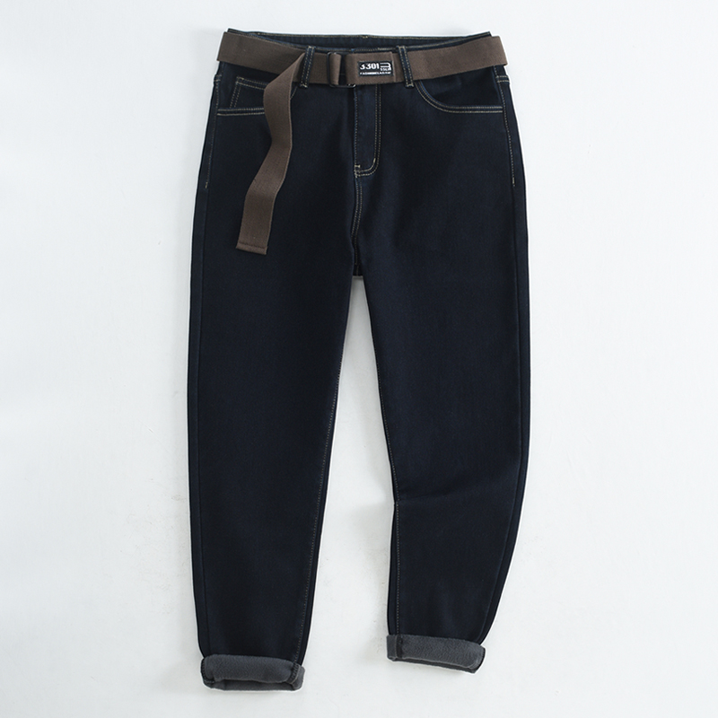 加绒加厚修身小直脚牛仔裤