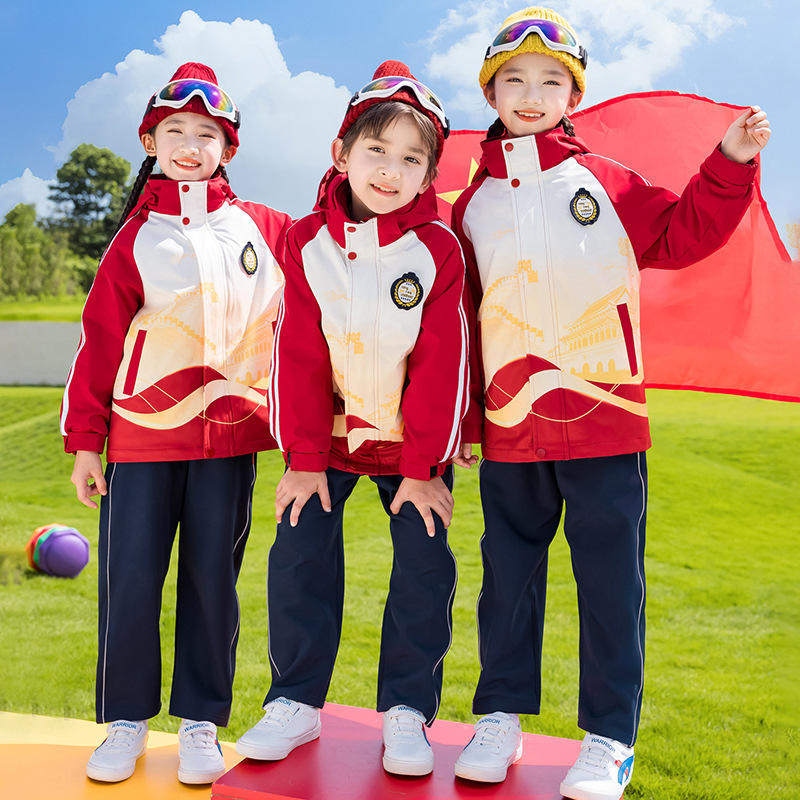 小学生校服一二年级加厚冲锋衣三件套初中生班服幼儿园园服秋冬装
