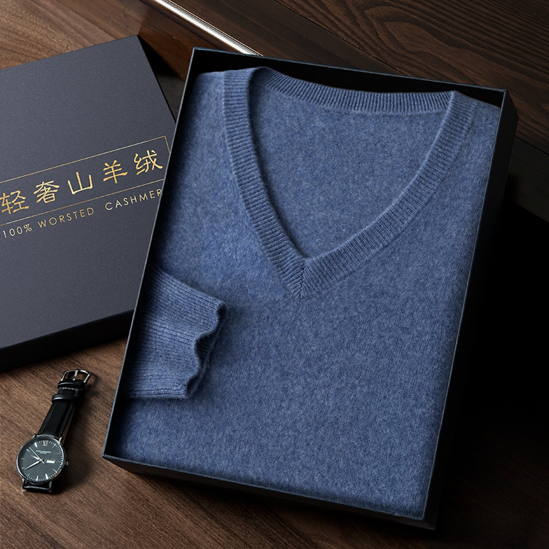 秋冬新款100%纯山羊绒衫男V领纯色套头毛衣鸡心领羊毛休闲打底衫