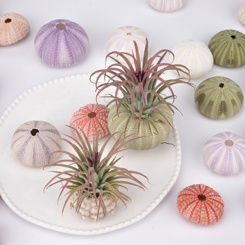 天然海胆壳贝壳海螺创意diy小夜灯地中海装饰空气凤梨多肉花盆