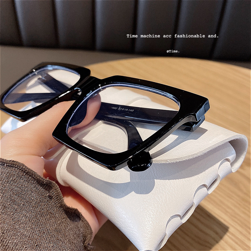 复古大方框护眼防蓝光眼镜女韩版潮粗框素颜神器圆脸显脸小平光镜