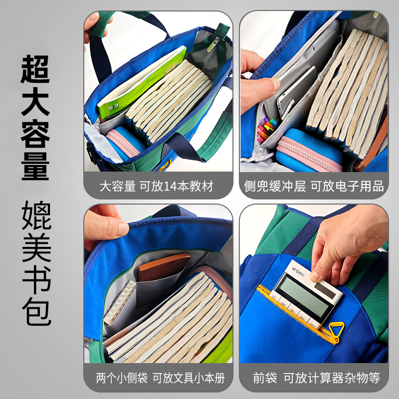 NATAMI奈多美防水补习袋学生手提袋可手提双肩斜挎拎书袋美术牛津布反光补课包男女孩儿童初中小学生大容量