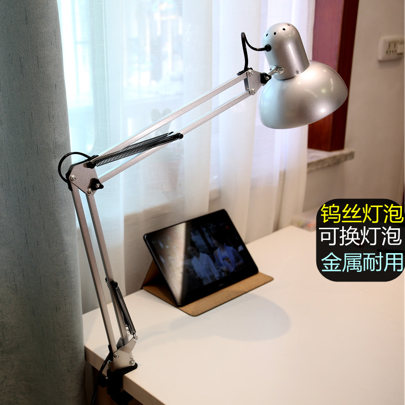 高配全铁艺复古老式钨丝灯泡护眼台灯E27可装调光LED大灯罩加长杆