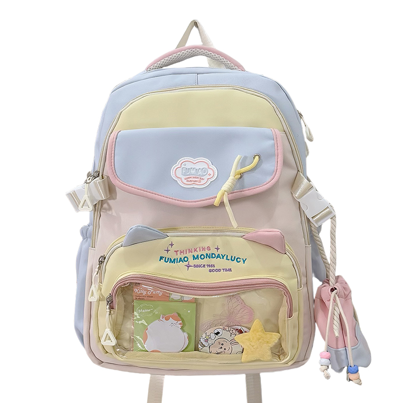 可爱猫咪小清新初中生大容量书包高中学生双肩包学院少女痛包娃包