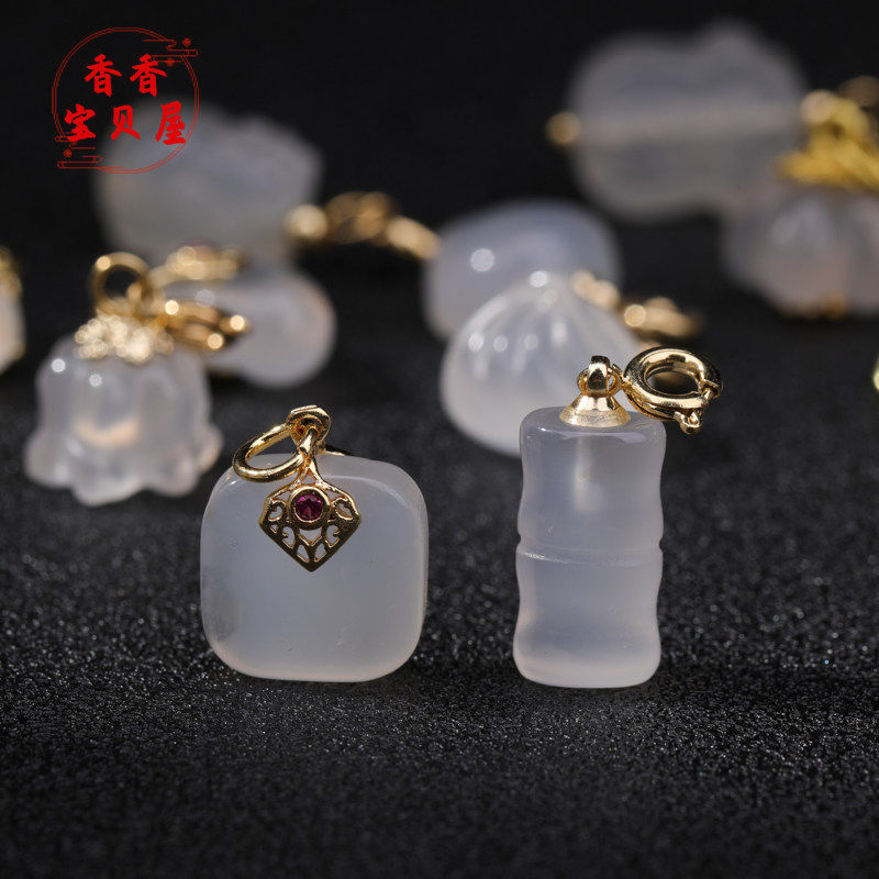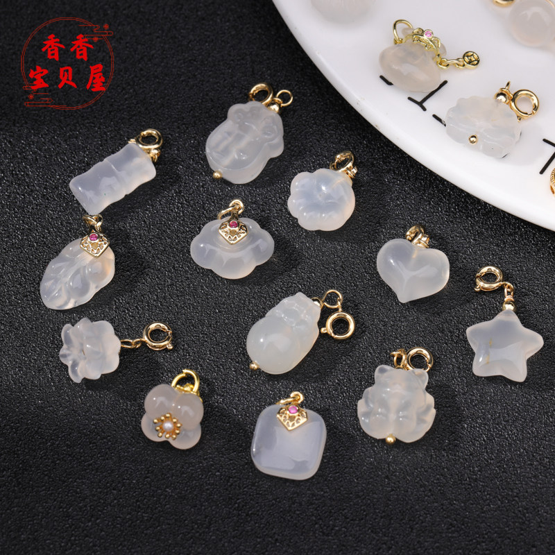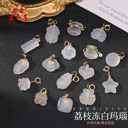 天然荔枝冻白玛瑙吊坠福袋猫爪 百搭轻奢diy手链项链挂饰串珠饰品