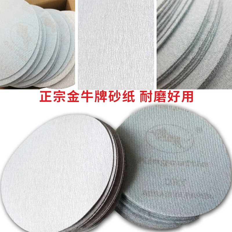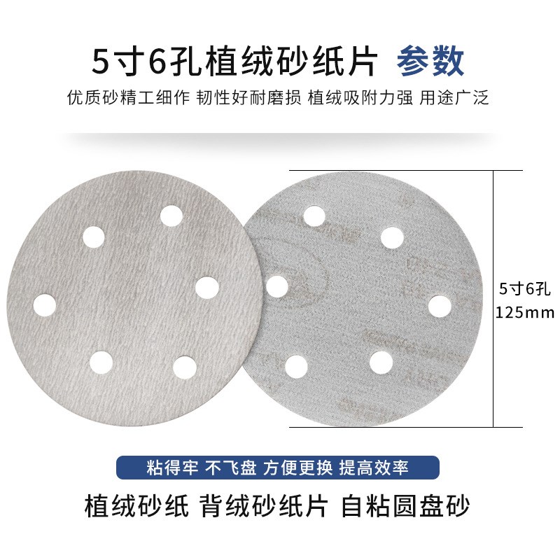 干磨砂纸5寸6孔植绒砂纸汽车圆形打磨砂纸气磨机白砂抛光砂碟沙纸