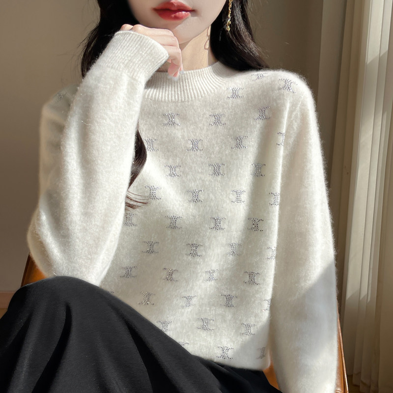 双股加厚】100%新款秋冬软糯毛衣女半高领套头针织宽松显瘦打底
