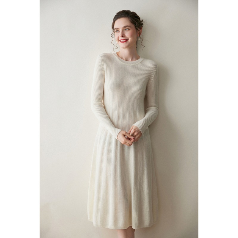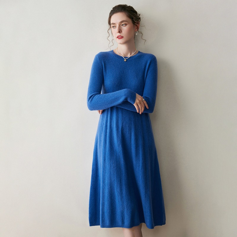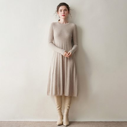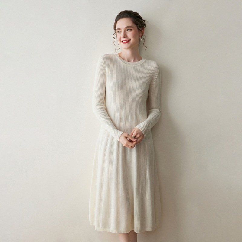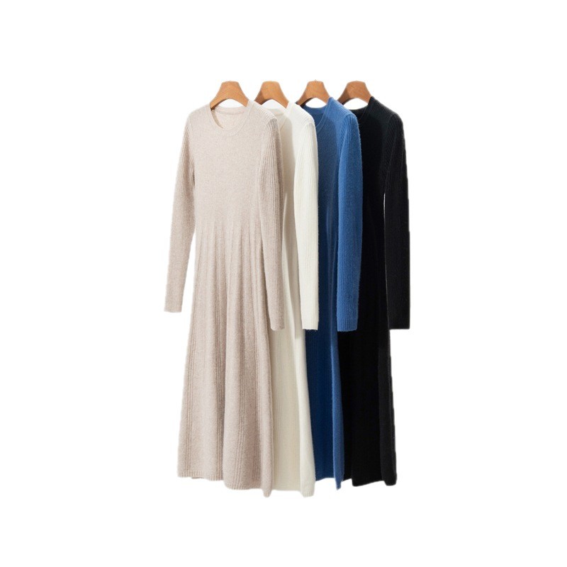 秋冬秋季过膝抽条半高领背心裙长款打底毛衣裙羊绒针织连衣裙修身