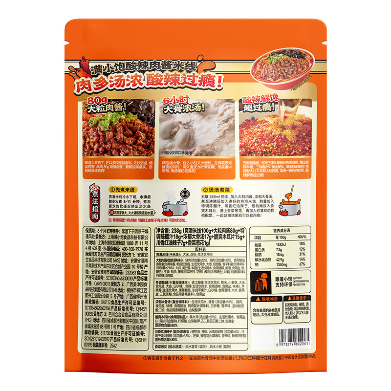 满小饱酸辣肉酱米线238g/袋懒人方便夜宵速食 肉多汤浓酸辣米线