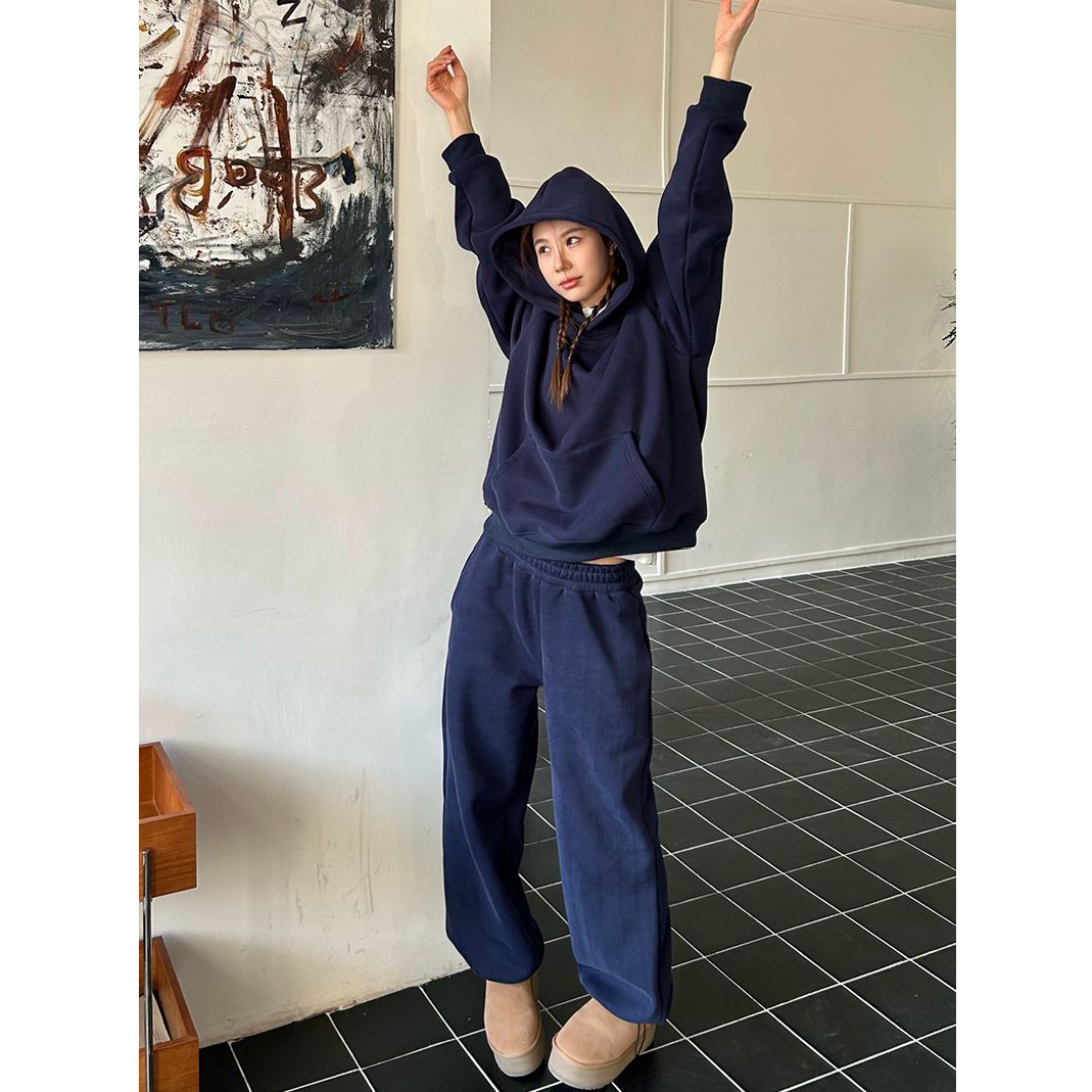 美式纯棉慵懒休闲运动套装女秋冬宽松显瘦潮牌学生卫衣长裤两件套