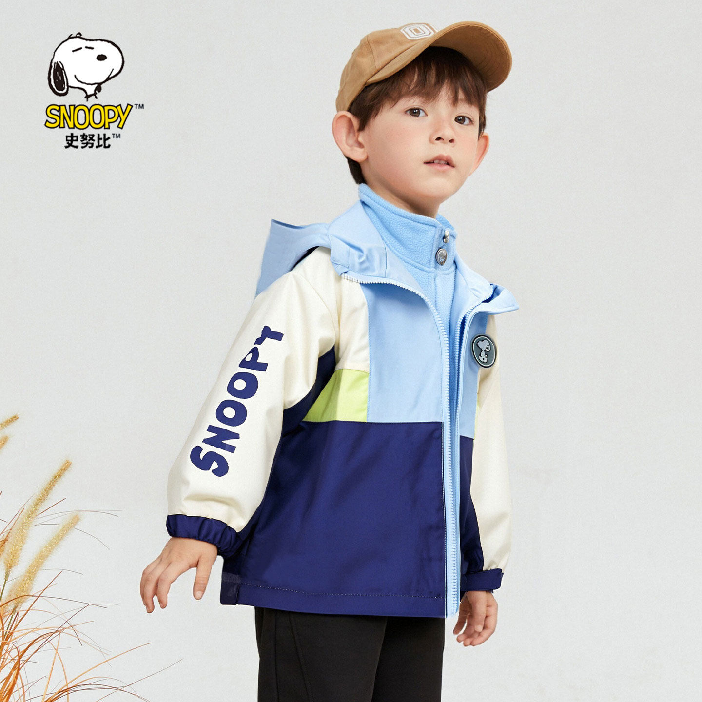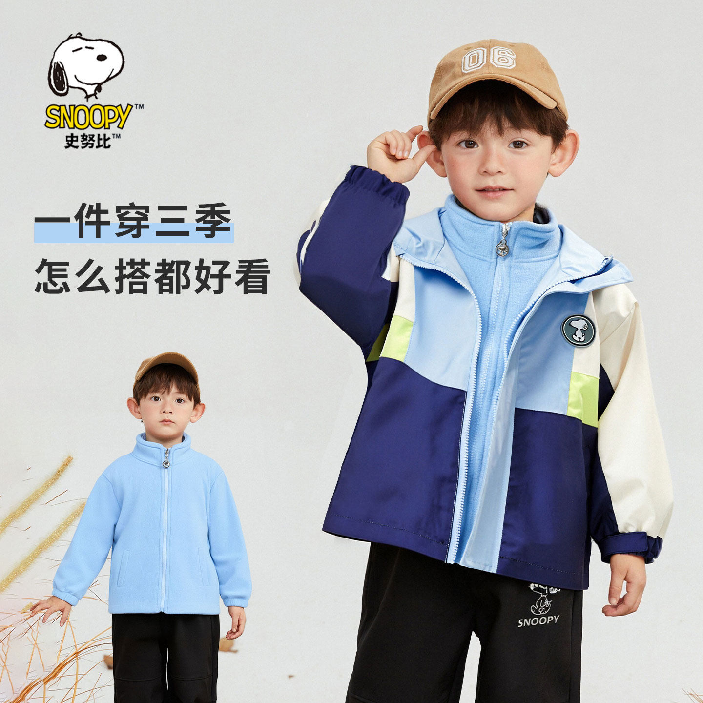 史努比男童冲锋衣三合一可拆卸春秋2025新款儿童秋冬外套防风防水