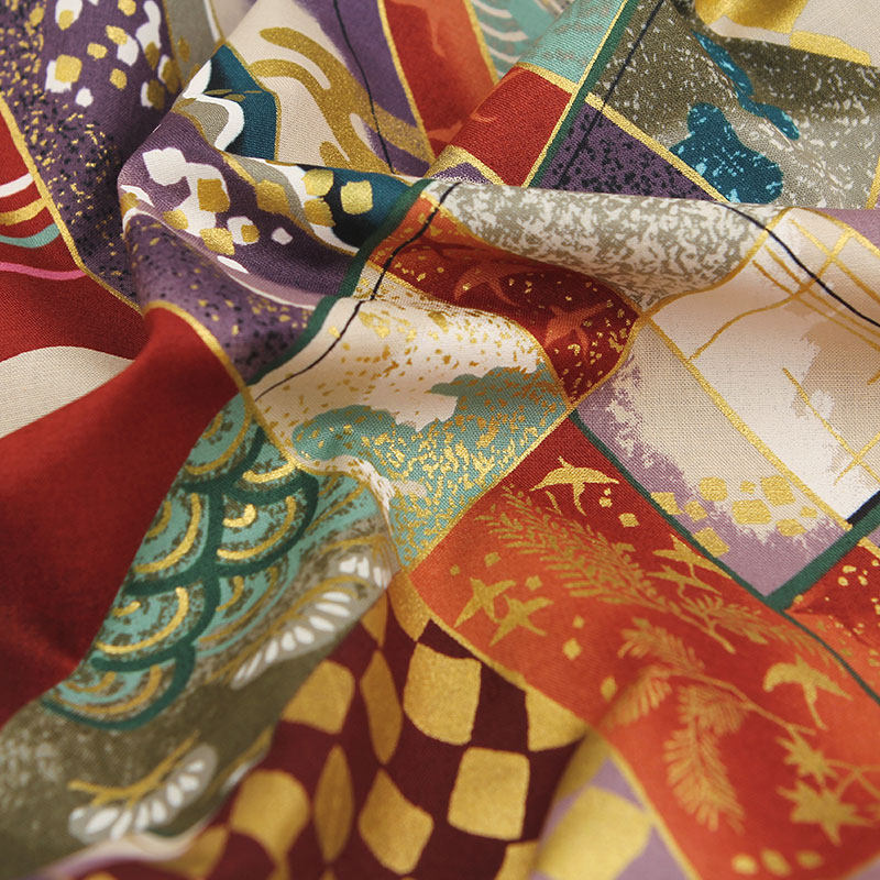 日本进口和风烫金银布料拼布手工印花棉布服装布料DIY有轮50*55cm